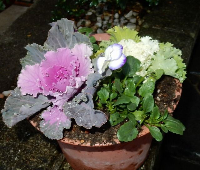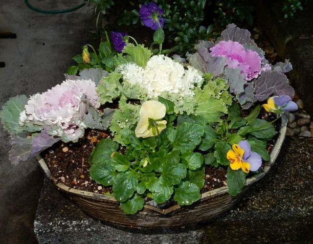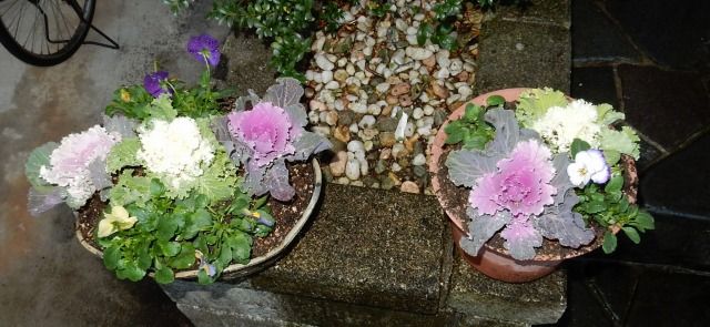 毎年月ヶ瀬のふれあい市にお願いして購入していますが、今年もハボタンとパンジーの寄せ植えを作ることにしました。