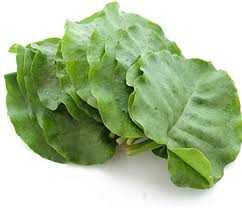 野菜として食べるのは、スペード型の葉っぱで、葉っぱは厚みがあり、ゴムのような弾力があります。