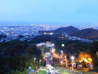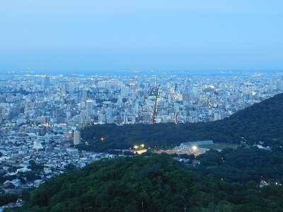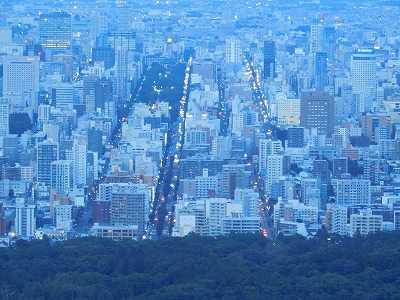 6時過ぎにリフトで山頂展望台に到着、暮れゆく札幌の町を1時間余り見続け、明るさの残った町筋が次第に暗くなり、大通り公園の照明が次第に明るさを増して行く様をみて、大満足でしました。