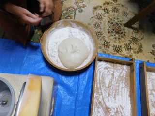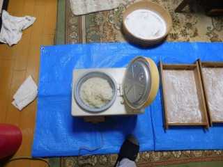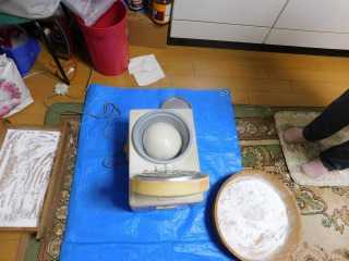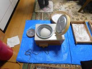 毎年使っている年季の入った電動餅つつきで二た臼尽きましたが、結構スムースに出来上がり、結果小餅が140個程完成しました。