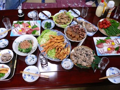 ショウタのお食い初めの儀式で娘ぽん太の嫁ぎ先に招待された。すごいご馳走~~~~遠慮なくいただきました。まだ食べられないけど一応形だけ。昔は果物のジュースから離乳食が始まったけど今はジュースはダメなんだって。へーーーーだよね。甘い味を覚えて離乳食を食べなくなってしまうのでジュースはあげないんですってーーー時代は変わっているんだねご馳走になるだけなって私は甲府へ走る友達と待ち合わせしてちょっとおしゃべりして山梨医大へまたまた走る山梨がんフォーラムの打ち合わせ。何だか忙しい日だったわぁー 今日は子守娘が今度こそ結婚式のお呼ばれに行ったのでおババは子守をしています。先週間違えたからね明日は鳥仲間と大月バーベキュー雨みたいだね~~~~~雨天決行ですからぁーーーーー久しぶりの鳥仲間とのオフ会。この所忙しくてオフ会があっても参加できなかったのよ。みんなで鳥自慢じゃ~~~~~