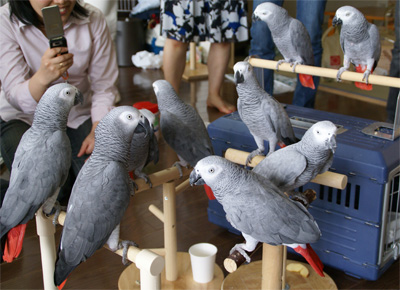 昨日は午後からひまわりの会でした。Dr飯塚の患者会。山梨県に大きい患者会はあるけれど手術したばかりの患者さんは同じ病院の話しを聞きたいはず私が手術した直後そうだったけど情報がほしかった。何でもない情報なのよ。抗がん剤でどんな副作用なのか私が特別ではなくてみんなそうなのかが聞きたかった。カツラの事・パットの事・乳房再建の事私の周りに乳がん患者の方がいなかったので話がしたかった。母親も乳がんだったのだけど手術後3年で亡くなっちゃったしなぁー今の私は、いっぱい乳がん友達が出来ていっぱい情報が入るけど一人で悩んでいる人はいっぱいいるはず。大きい患者会も有意義だけど小さい病院の同じドクターの患者同士の輪って必要だよね。お茶を飲みながら話しをする事が第一歩だよね。 後片付けもしないで私は「お先に失礼します」みんな「えーーーーーーーーーこれから新宿へ行くの」はい中央高速をぶっ飛ばし・・・いえ・・・ちょっと急いで(覆面をきにしながら)大月に戻り駆け足で大月駅に向かい特急に飛び乗る鳥仲間との飲み会の為新大久保へ走るAちゃんの行きつけの飲み屋に集合そこでおいしいと評判だった「にごり芋焼酎」ちょっと舐めて見ればっと言うお誘いもお断りしてウーロン茶だったのですがみんなが余りにもおいしいとの評判だったので大月BBQの為にネットで注文しましたよ。大騒ぎをしているとAちゃんの音楽仲間がどんどん集まってきた。Aちゃんはピアニスト。世界的に有名なフルーティスト デニス・ブリアコフさんが登場むふふ~~~おばちゃん根性丸出し。さっそくツーショットを撮らせていただきました。終電に間に合わないので私は先に出てきたのだけど大月の着いたらもう午前様でした~おほほほほ本当はヨウム倶楽部のしまもり宅オフ会があったのだけど、さすがに3箇所の掛け持ちは無理。でもヨウム11羽が集まったんだって~~~~~~ペットショップでもこんな光景は写真に撮れないよね 今日も甲府へ行ってきた私。明日から暫く大人しくしてよ~~~~~~~