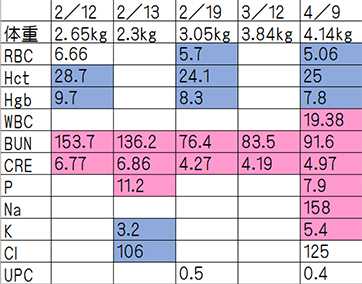 1ヶ月振りのチビの受診日15時に予約しておしっこ持参で病院へクルマの中ではずーっとニャアニャア 疲れちゃうよっていうくらい・・・今日は違う先生だった前回の検査データを貰っていなかったので今回はちゃんと貰った今日の体重:4.14㎏ 増えちゃってるじゃん 確かに食欲旺盛食べ過ぎて肥満になると腎臓に負担が掛かるといわれていたのに・・・点滴せめて1日おきにならないかあと思ったけど腎臓の機能が悪化しているというので今まで150ml/回だったのを200ml/回に増えちゃったよでもって500mlのボトルから1Lの生食ボトルへと変更それから便秘気味でコロコロ固いウンチというとラクツロースが処方された便秘気味だったので昨日パウチの御飯を色々買って来ちゃったけどまた、改めて腎臓食に切り替えないと・・・・ごめんねチビちゃん甘やかせちゃったねそれから爪が伸びていたので切ってもらったその際、だいぶ痛かったのだろう全身で抵抗して押さえていた私の腕にガブッと噛まれそうになった最後はタオルを顔(口のまわり)に巻き付けて防御痛いことばかりでごめんね帰ってきたら疲れ切って寝てしまったよ次回は1ヶ月後腎不全は良くはならないけどせめて点滴は無くならないかなあ~
