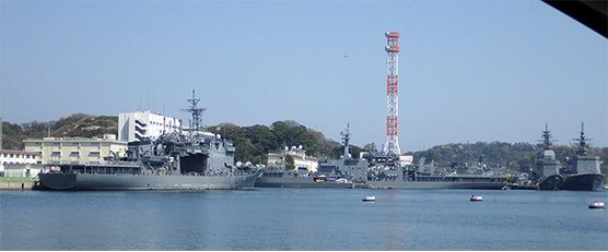 で、ぐるっと走ると海上自衛隊自衛艦隊司令部の艦隊が見えるのね