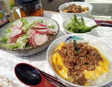 お昼は”ふわふわ玉子挽肉あんかけ丼を作って食べ