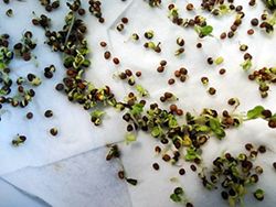 第二弾の貝割れ大根 まだ暗いところで栽培中