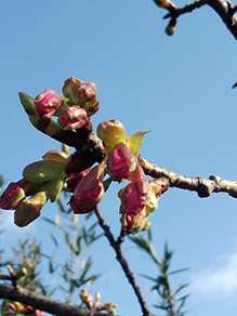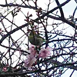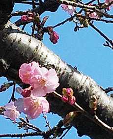 お散歩で公園へ    河津桜も少し咲いてきました      木瓜