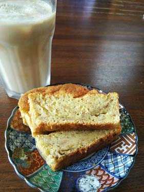 そのあと、​ 完熟バナナでバナナケーキを作って