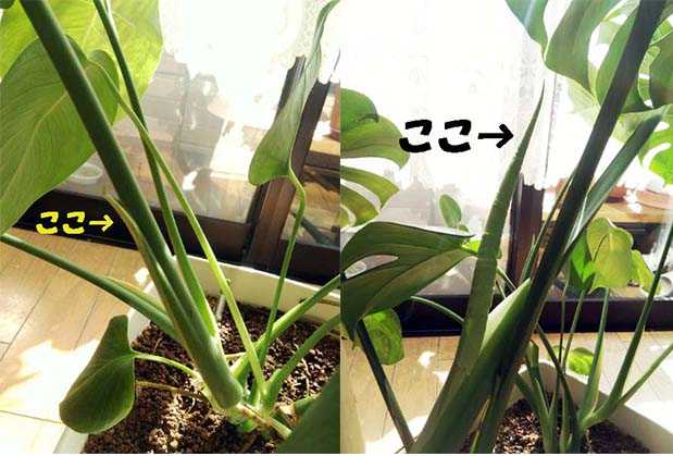 やっぱり右側のは大きな葉になりました 左側の葉はその下