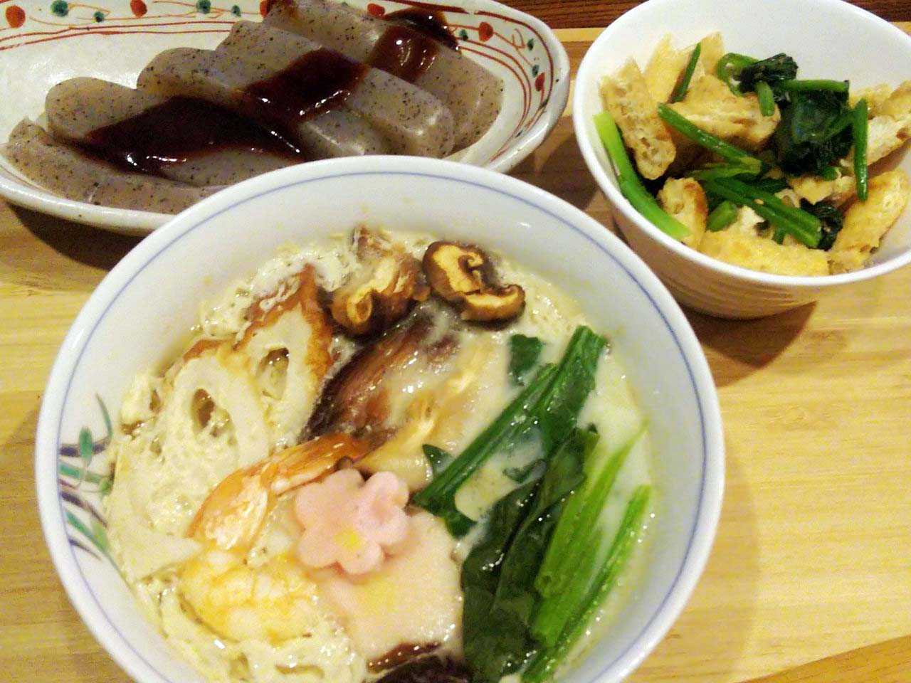 夕食は柔らかい「小田巻き蒸し」と「コンニャク味噌」