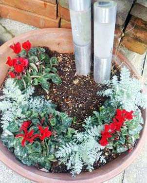 玄関先にポーチュラカが終ったので新しくシクラメンを植えた