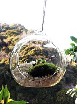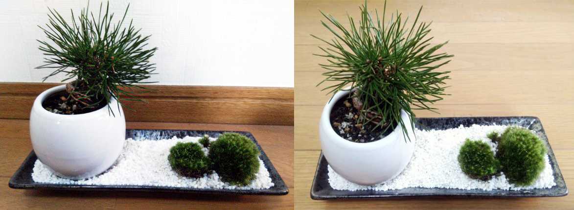 グリーンファームでやっとミニ盆栽を手に入れたので苔寒水砂と配置してみた