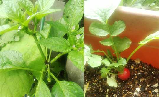 万願寺唐辛子の赤ちゃんを見つけ、二十日大根の赤色に心ポカポカし