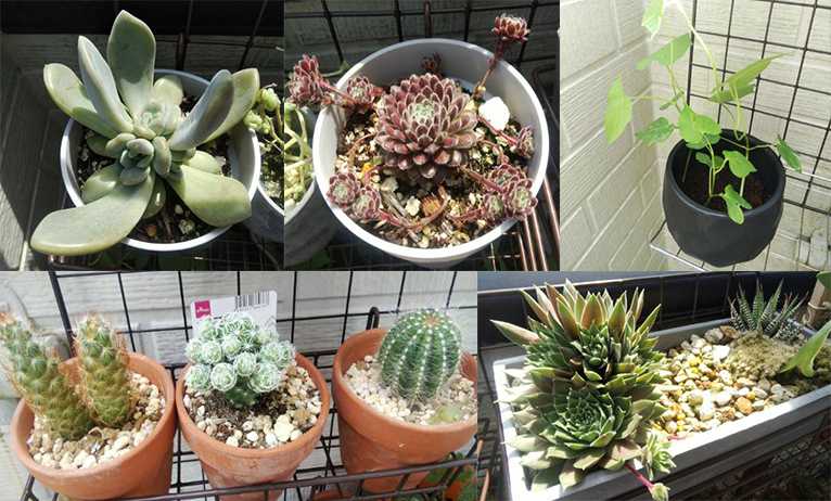 3階のベランダコーナー 4月16日に植えた月下美人錦とセンペルビウム