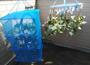 裏庭の絹さやを処理した際、周囲のドクダミを抜いたので乾燥開始