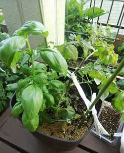 ほったらかしトマト 一緒に植えたバジルの方が元気