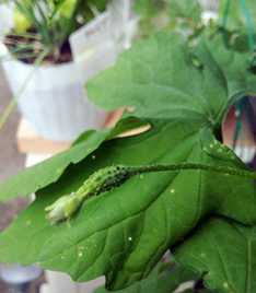 苺も4粒赤くなったので明日頂こう    ゴーヤの赤ちゃん 育つかなあ
