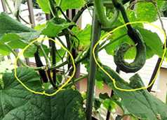 あちこちに大きくなってる胡瓜発見 曲がっちゃってるけど・・・