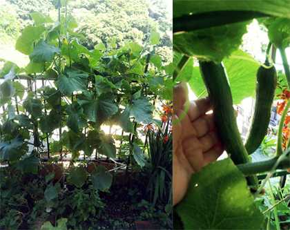 今朝は ​胡瓜1本(19本目)と茄子1本(4本目)ミニトマト4個​  収穫
