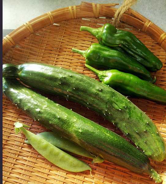 胡瓜2本(32本目)万願寺唐辛子3個(22個目)スナップエンドウ2個(8個目)​