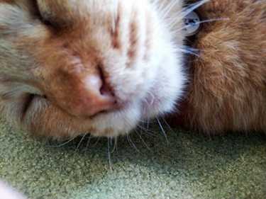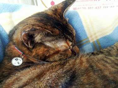 食後、ふたりはケージの上のバスケットの中で丸くなっていた