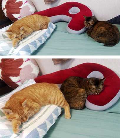 私が出掛けるときにはふたりしてベッドでマッタリしていた