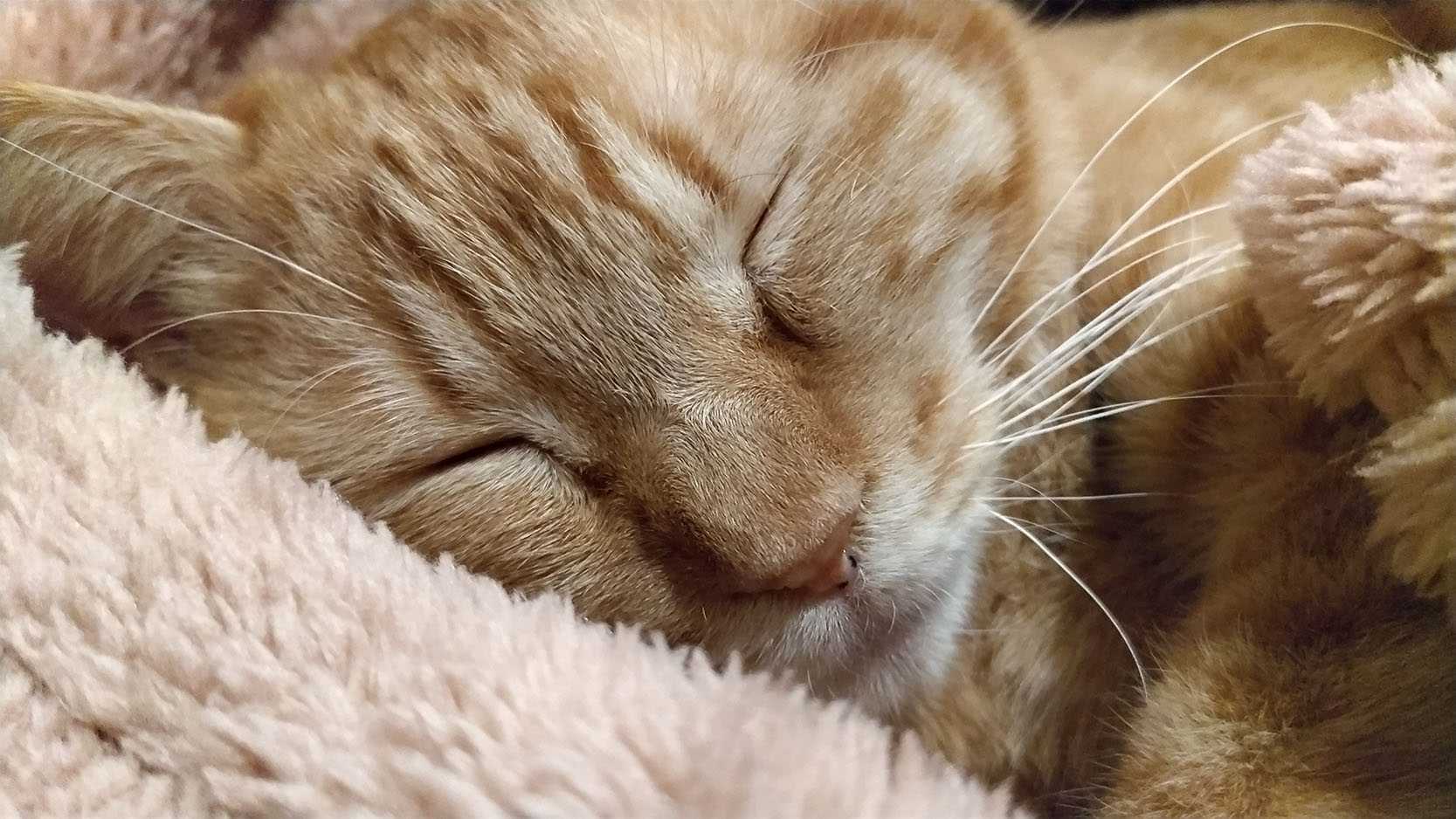 りんちゃんはケージの上の籠に入り込んで丸くなって埋もれている