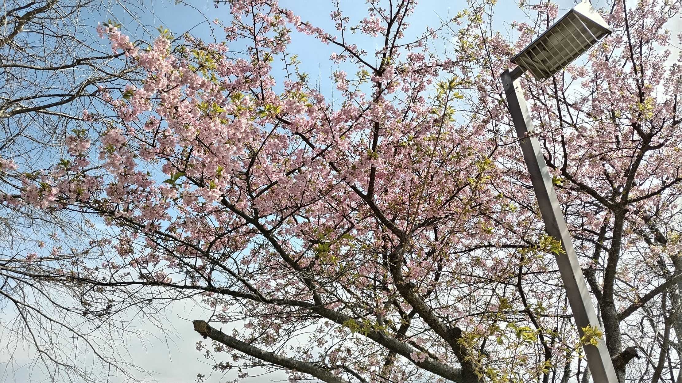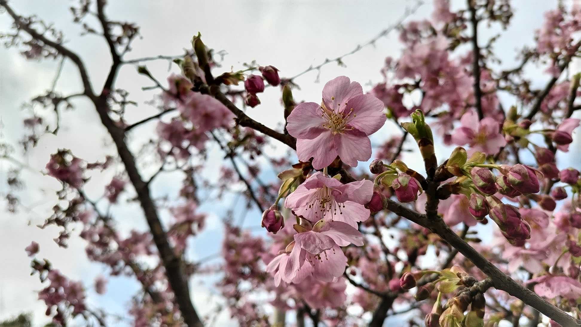 その帰り、自宅近くの公園の河津桜も結構咲いていたので、