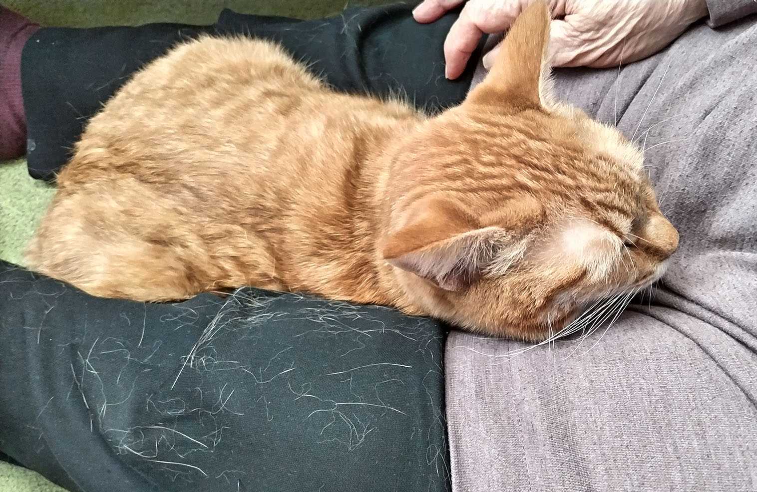 最近のくうちゃんはやたら甘えん坊で母の足の間に潜り込んでお休み