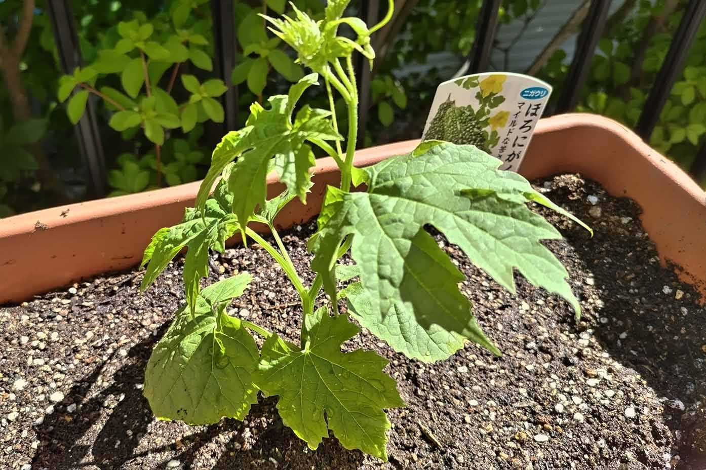 ゴーヤは落ち着いたら2階のベランダに移動する予定なのでプランターに植えた