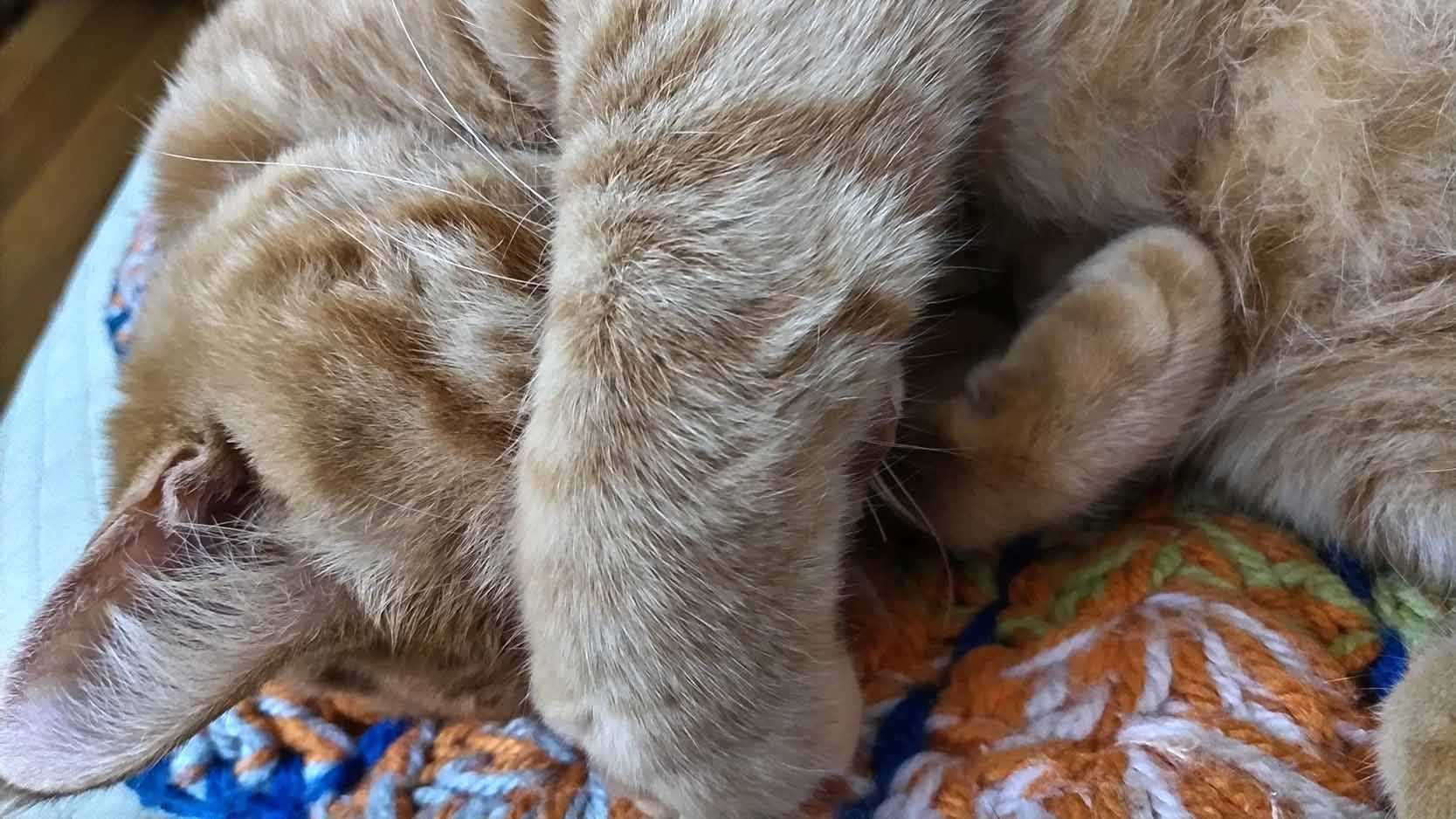 枕にちゃんと頭を乗せて寝ているし ちょっとグータラ感あり