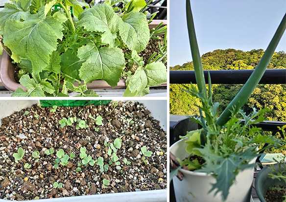 3階のベランダ栽培 ベビーリーフ・二十日大根 トマト