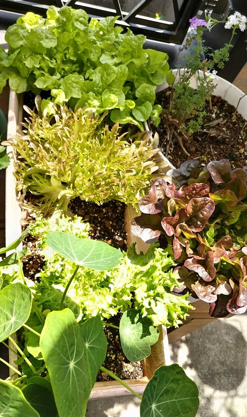 レタス3種と種?が飛んで?育ってきたナスタチウム