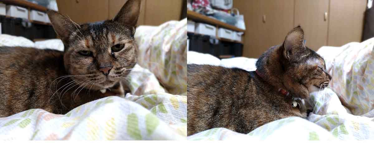 日中姿が見えないなあと思ったら、私のベッドの上でお休みしていたり