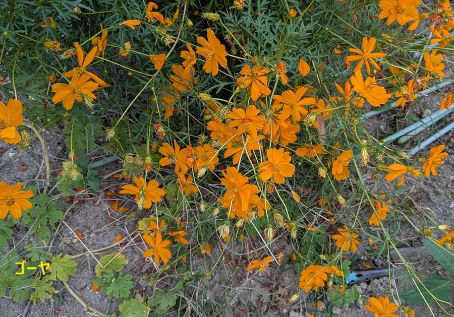菜園はこぼれ種から お花畑になってます