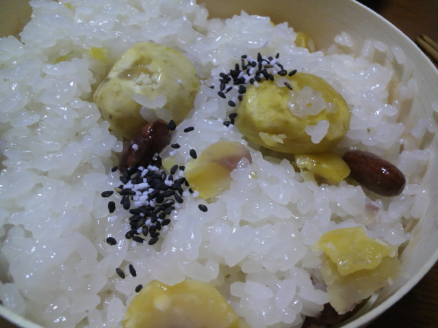 先日 和菓子屋さんの創業祭に行ってきました おこわが食べたいな~なんて思いながら車の中で歌を熱唱しながら向かいました お店に入ってすぐに 出来たてほかほかの栗おこわが出てきて並べる間もなく 完売~ なんてラッキ-なんでしょう ペロッといただきました 金時豆も入ってて美味しかったです