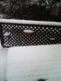 。ところが、9時頃だったか、ふと外を見ると雪のようなものがちらちら。でも、強風で山から飛ばされて来たんだろうなんて思ってる間に、なんと