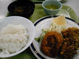 あとは、カレーコロッケ・マカロニサラダ・みそ汁・ご飯・グレープフルーツ。