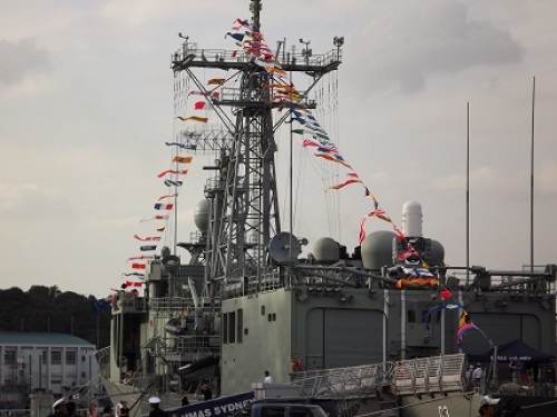 今日もかなり暑い日になりました。今日は仕事の予定が入ってましたが昨日は弟から全く連絡がありませんでした。仕事があるのか、あるんだったらどこでどんな仕事なのか全然連絡がありませんでした。仕事の予定が一日遅れるかもしれないと言ってたので、一日伸びたので連絡が無かったのだと思っていました。しかし今朝、携帯に着信がありましたが電話には出ませんでした。弟は自分の都合でしか電話をしてこないので今回は出ませんでした。結局、今日も朝一度だけ電話してきただけでそれから一度も連絡がありませんでした。何か私に頼みたい時だけしか連絡してこない弟に腹が立ちます!と言うことで、昨日見れなかった観艦式を見にいきました。会場に行くし二隻の軍艦が停泊してましたが、二隻とも自衛隊のものではありませんでした。一隻はオーストラリア海軍、もう一隻はシンガーポール海軍の軍艦でした。会場の入り口には金髪美人の兵士が立っていて、嫁さんは一緒に記念撮影をして大喜びです♪オーストラリアの戦艦のようです。これはシンガポール海軍でした。何故か桟橋の端っこにはウミネコの団体さんが、、今日はどうやっても写真が載せられず一時間ほどやっています(怒)また近いうちに乗せられるようになったら載せたいと思います。4時間経ったら画像が載せられるようになっていました。