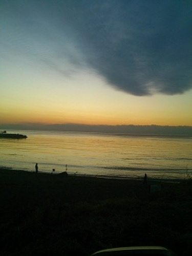 この日も晴れだよね。日記更新が朝5時くらいだったりするので日付がずれてしまう時がしばしばです。毎日更新しているのに時々抜けているのは日付を間違えている時のようです。最近は高機能エダィタがちゃんと機能していて画像が載せられるけど、最近はデジカメを持ち歩かなくなってしまったので全然撮ってませんそれでも夕日が綺麗だったので海岸まで行きましたがちょっと遅くなってしまって夕焼けではなくなってしまいました。嫁さんの携帯でパチリ