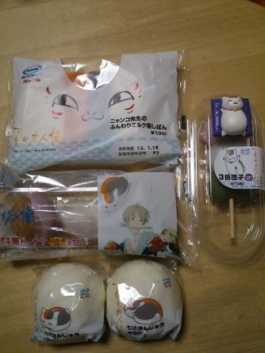 乾燥しまくり、、先日からファミマで「夏目友人帳」のキャラクターのニャンコ先生のパンなどが売りに出されたので嫁さんが欲しいと言うので昨晩ファミマに出掛けましたこれは何故だか北海道のファミマだけはやってないそうで、来月義父の一回忌に行く時に友達に買っていく予定です。一件目のお店では売れ切れていて一個も売ってませんでした。二件目でやっと二つゲット!テレビで散々CMしているわりにはあまり量は置いてなく、すぐに売り切れてしまうようです。そして今日も病院の帰りに寄ってみました。やっと買えて嫁さんはご満悦です中身は普通の饅頭や蒸しパンや団子でちょっと期待はずれか?まだ開封してないけど、、
