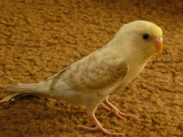 ペットショップで羽をクリップされているんです。尾羽は最初に見たときからちょっとぼさぼさ。う~ん集団の中で誰かにちぎられちゃったみたいな感じかも...。