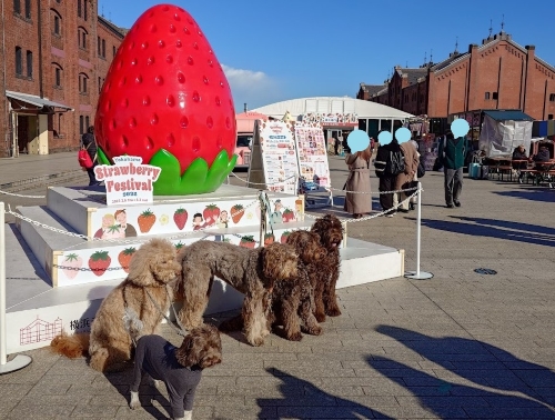 プードルたちがお行儀よく飼い主さんたちの写真におさまってた。