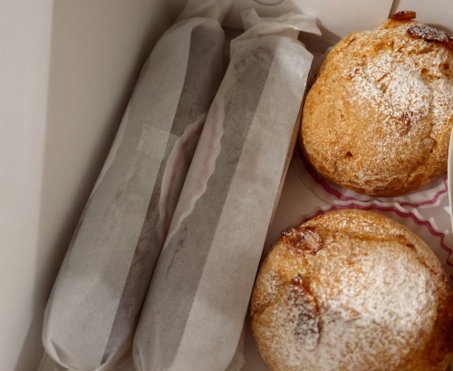 ほんとはエクレアだけにしようと並んでたけどやっぱり買ってしまった「ムッシュ」と言う名のシュークリーム♪