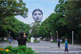 これ、「まさゆめ」というタイトルのプロジェクトらしいですけど、東京に突如出現した得体の知れない顔、シュールでいいね! どの角度から見ても、どういう背景で見ても、とてつもないインパクト。例えば、新宿の高層ビル街の中にこれが浮かんでいたとしても、見ものだったんじゃないかな。実物を見たかった! これさあ、東京オリンピック目当てで日本にやってきた大勢の外国人の観光客が見たら、さぞ、大受けだったんじゃね? 残念!