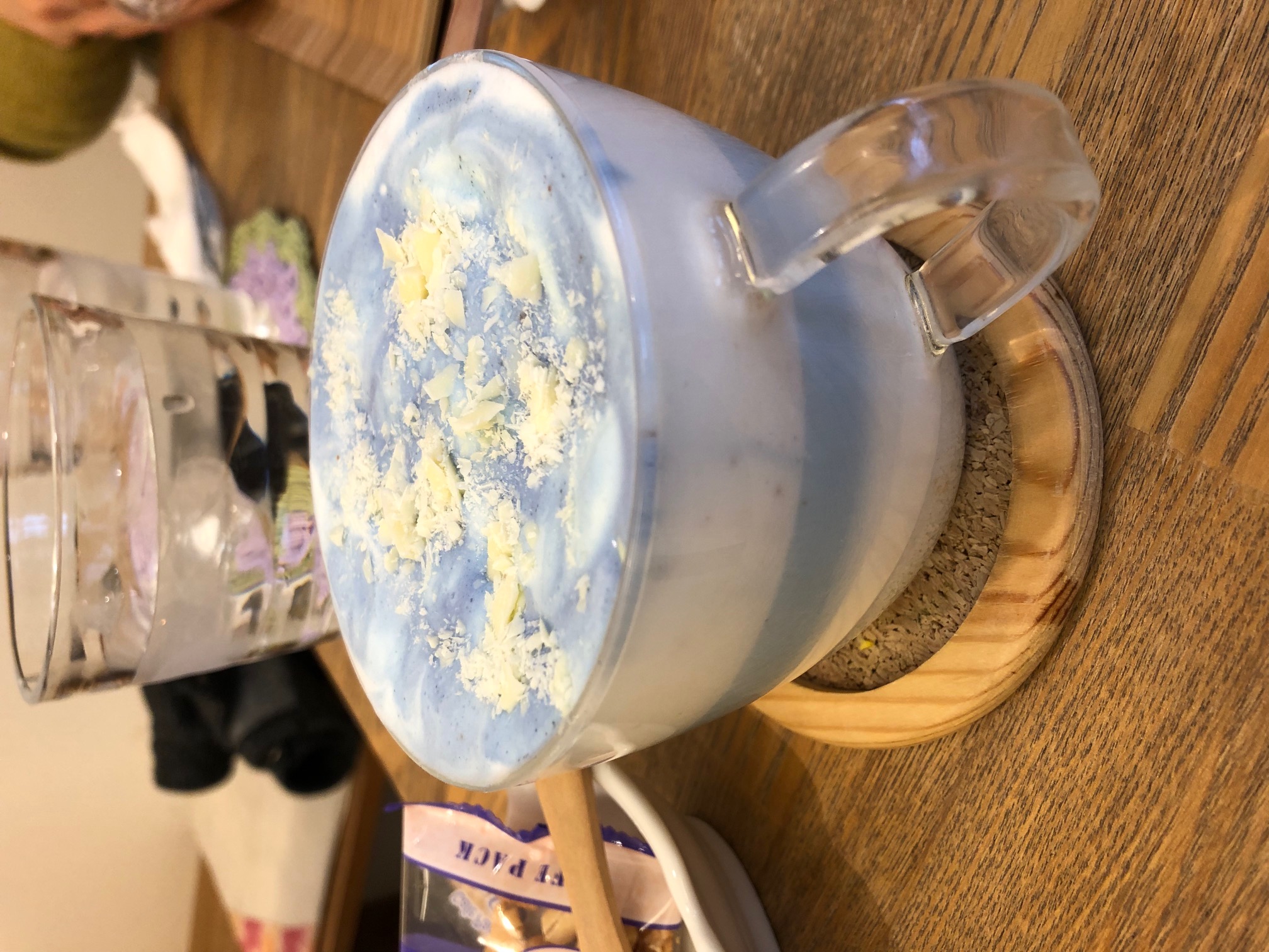 で、その後、「カフェT-Ryujyu」で、珍しい青い「藍ラテ」をいただき、身体を暖めてから帰路についたのでした。