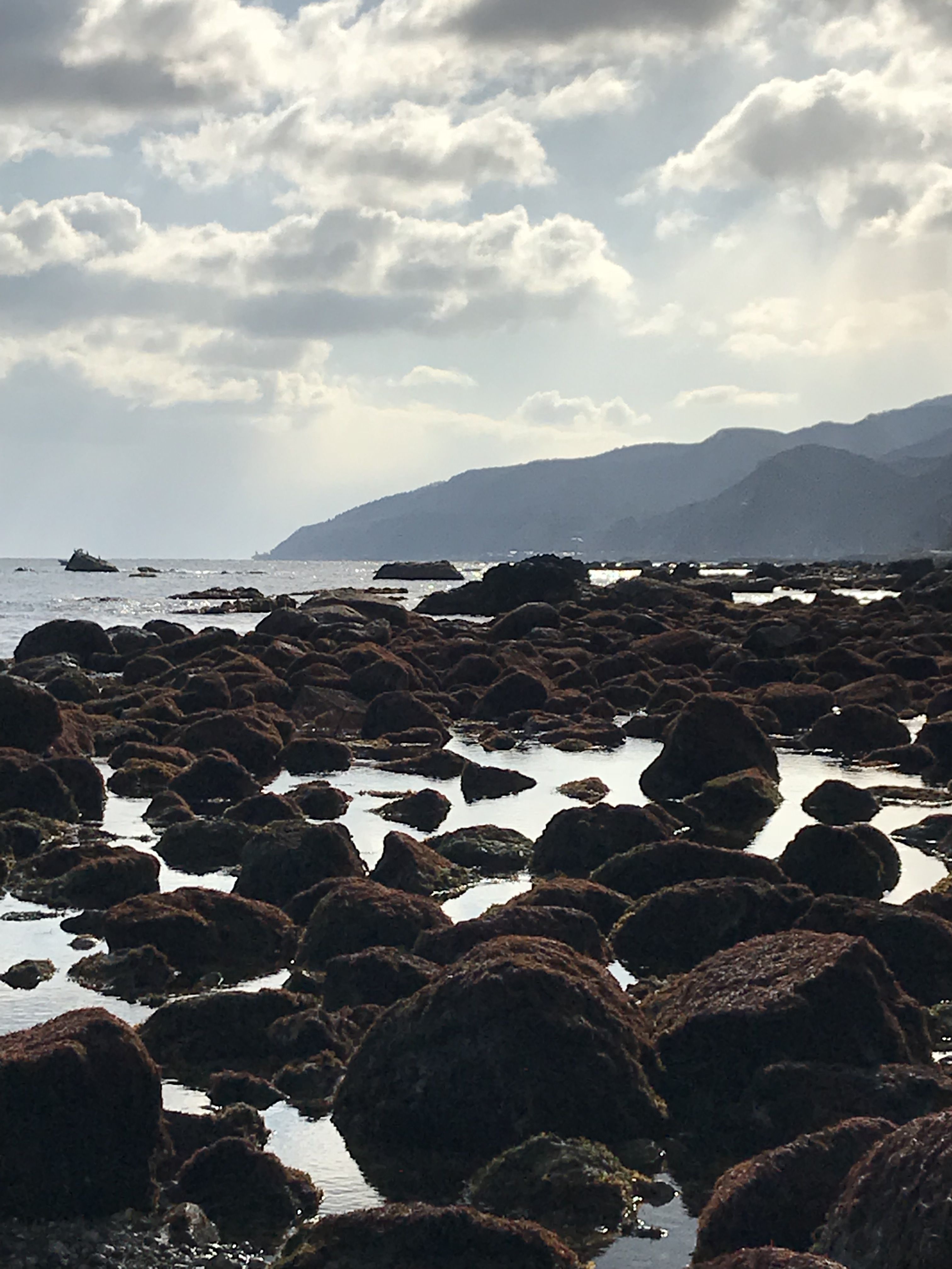 そして翌週は本州最北の大間へ朝の2時?に出発 この日はいつもの友人の運転でした北へ向かうこと約6時間大間崎近くの海岸で一休み 海岸はフノリだらけです
