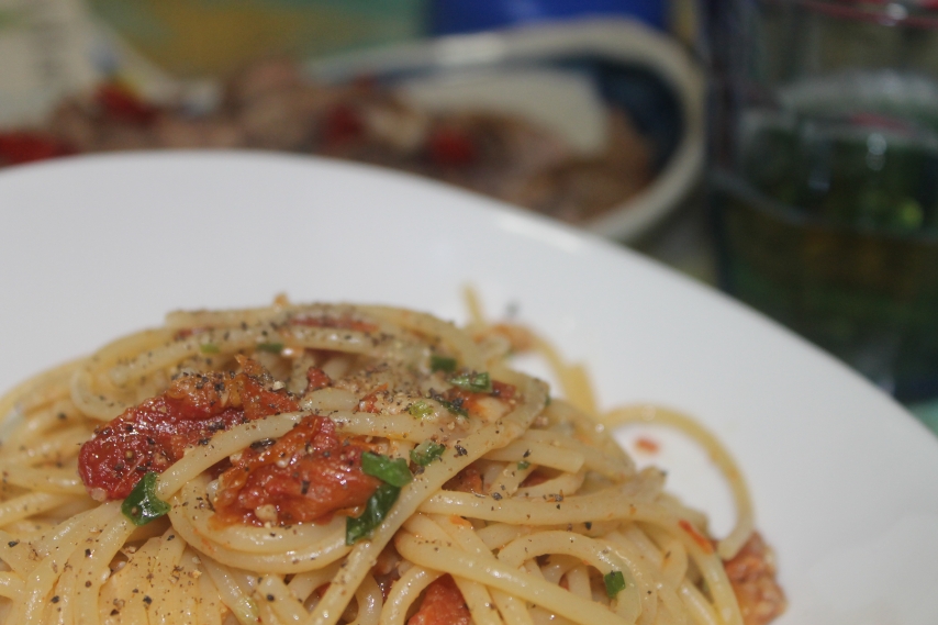 ドライトマトとアンチョビブラックオリーブ入れても良かったかな?