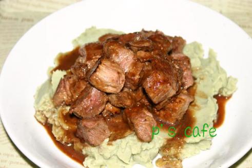 サイコロステーキの下にひいてみました♪グリーンピースより好きかも、、、