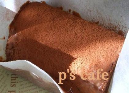 生地はコーヒー味のシフォン生地中身はビターチョコのクリーム外側は軽くココアクリーム
